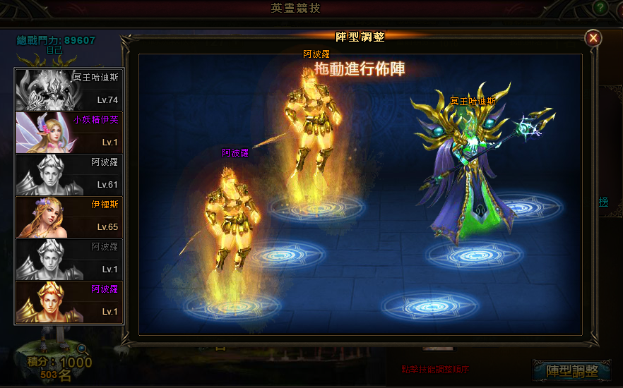 6、點擊“陣型調整”按鈕彈出界面,可以在此介面下調整英靈陣型。