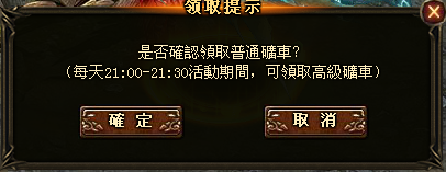 -21:30為活動時間,活動期間內可領取高級礦車並提交高級礦車可獲得雙倍獎勵。領取